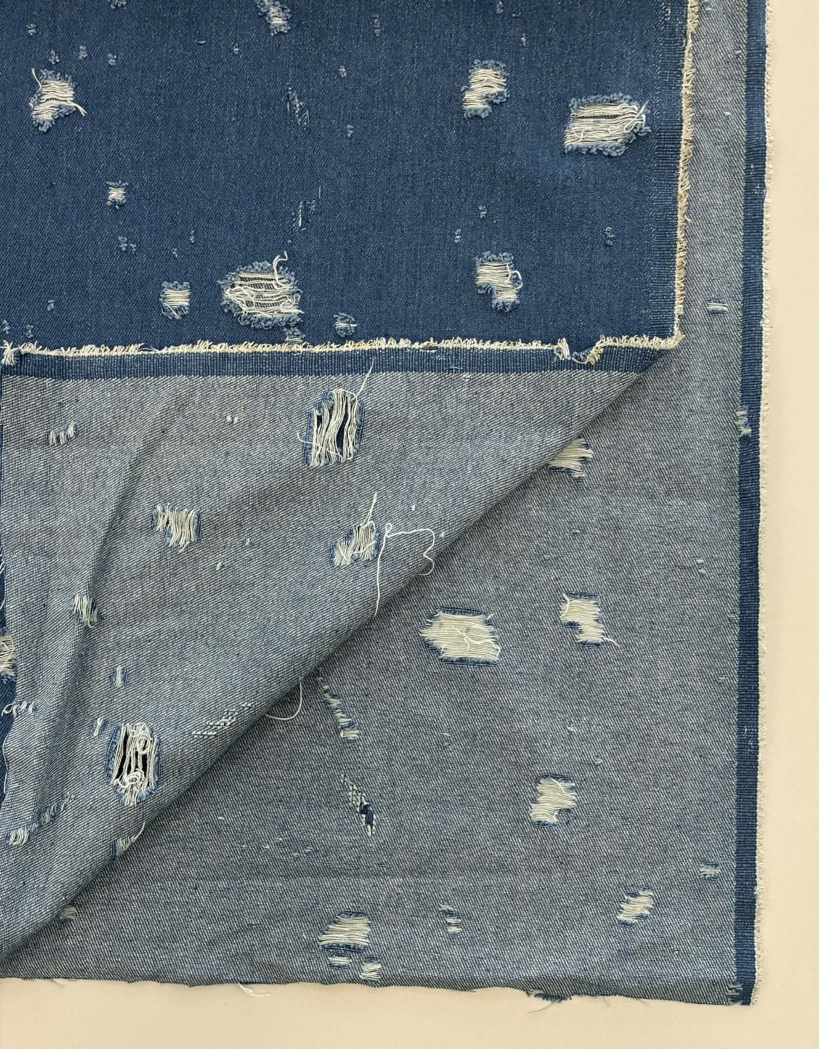 Džinsas Plėšytas mėlynas. Džinsas – tai klasikinis, tvirtas ir ilgaamžis pasirinkimas, garsėjantis savo universalumu ir patogumu. Austas iš medvilnės verpalų bei papildytas elastanu, kad suteiktų judėjimo laisvę ir konfortą. Džinsas išsiskiria charakteringa tekstūrą, todėl kiekvienas gaminys įgauna unikalų stilių. Puikiai tinka kasdieniams drabužiams – nuo kelnių iki sijonų ar aksesuarų.