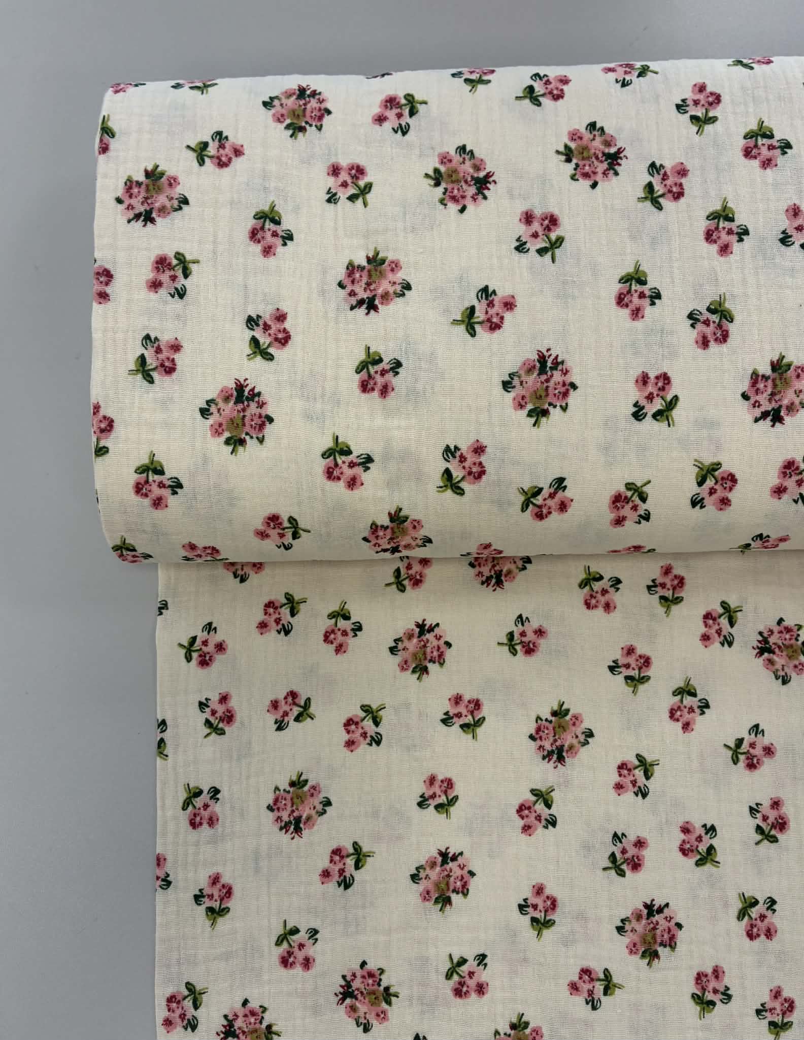 Medvilninis double gauze muslinas Gelsvos rožytės – muslinas tai reto audimo medžiaga, kurios abi pusės gali būti naudojamos kaip gerosios. Medvilnė puikiai sugeria drėgmę, nesielektrina, todėl yra tinkama drabužiams, skiautiniams, namų tekstilei, patalynei, užuolaidoms, rankdarbiams ir kt. Audinys neturi elastano, nesitampo. Tai reikėtų įvertinti prieš apskaičiuojant, kiek audinio Jums reikės. Šis audinys yra tvirtas, kokybiškas, todėl tinka įvairių rūbų siuvimui ne tik suaugusiems, bet ir vaikams. Iš šios medžiagos pasiūti drabužiai malonūs dėvėti, patvarūs, paprastai skalbiami ir puikiai sugeriantys bei išgarinantys drėgmę, leidžiantys kūnui kvėpuoti. Pagrindinis medvilnės privalumas – higieniškumas, todėl puikiai tinka drabužiams, kurie tiesiogiai liečiasi su žmogaus kūnu. Medžiaga labai praktiška, nereikalauja ypatingos priežiūros. Net ir dažnai skalbiant, bet tinkamai naudojant ir prižiūrint ši medžiaga ilgai išlaikys pradinę spalvą, formą ir išliks kokybiška.