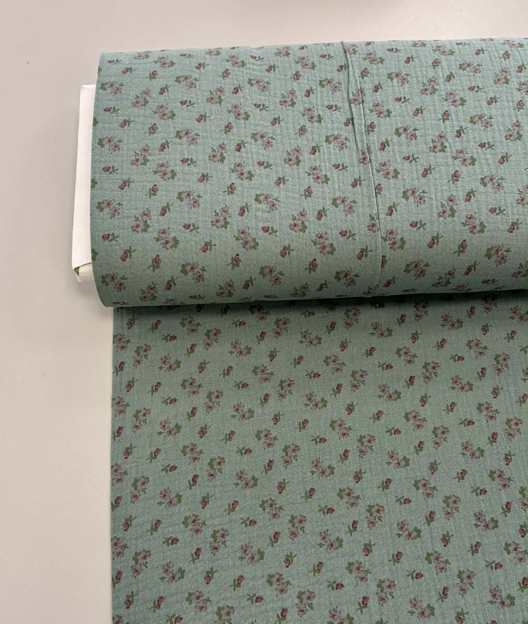 Medvilninis double gauze muslinas Mineral smulkios gėlytės