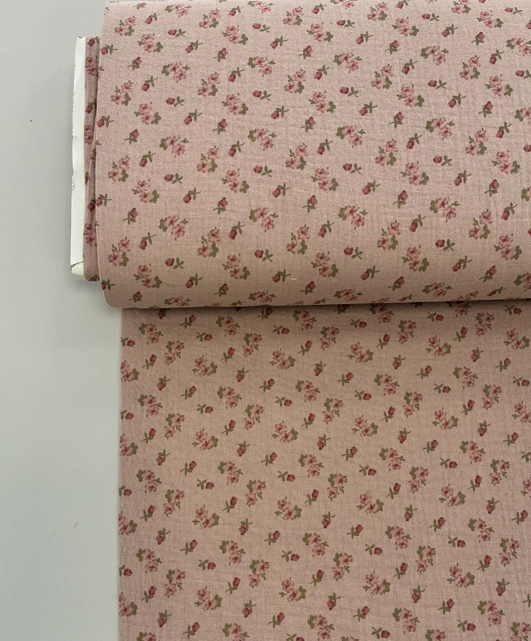 Medvilninis double gauze muslinas Pelenų rožė smulkios gėlytės