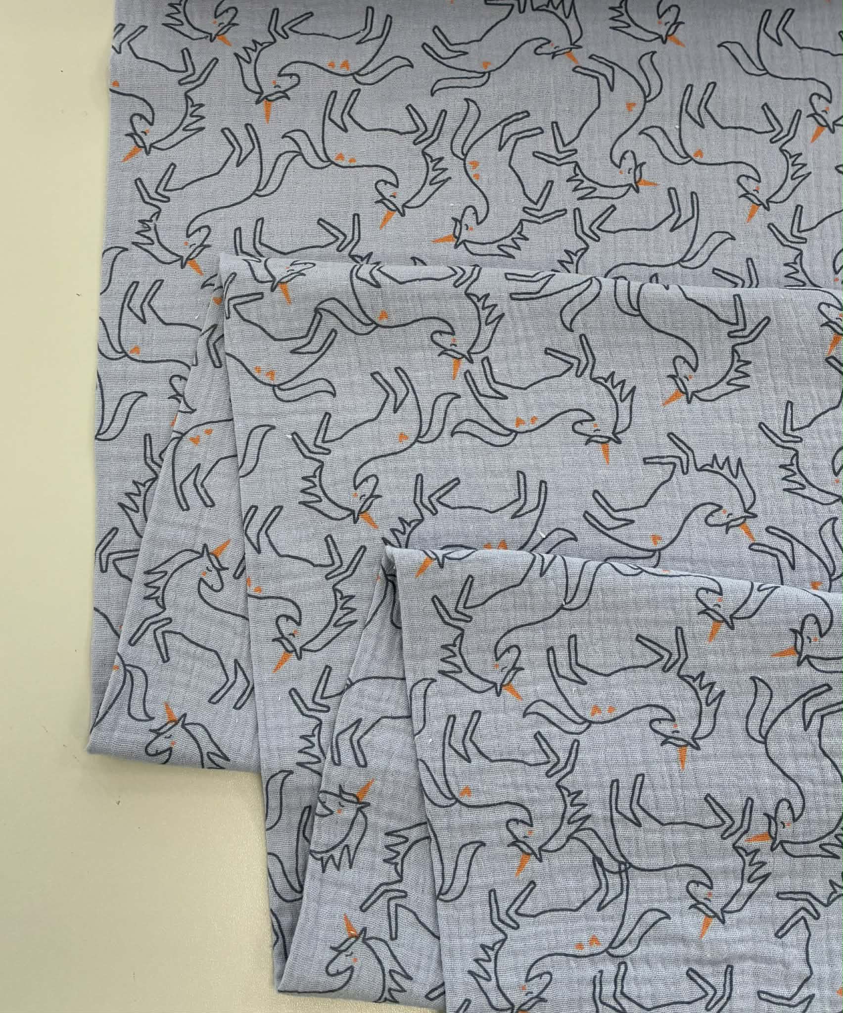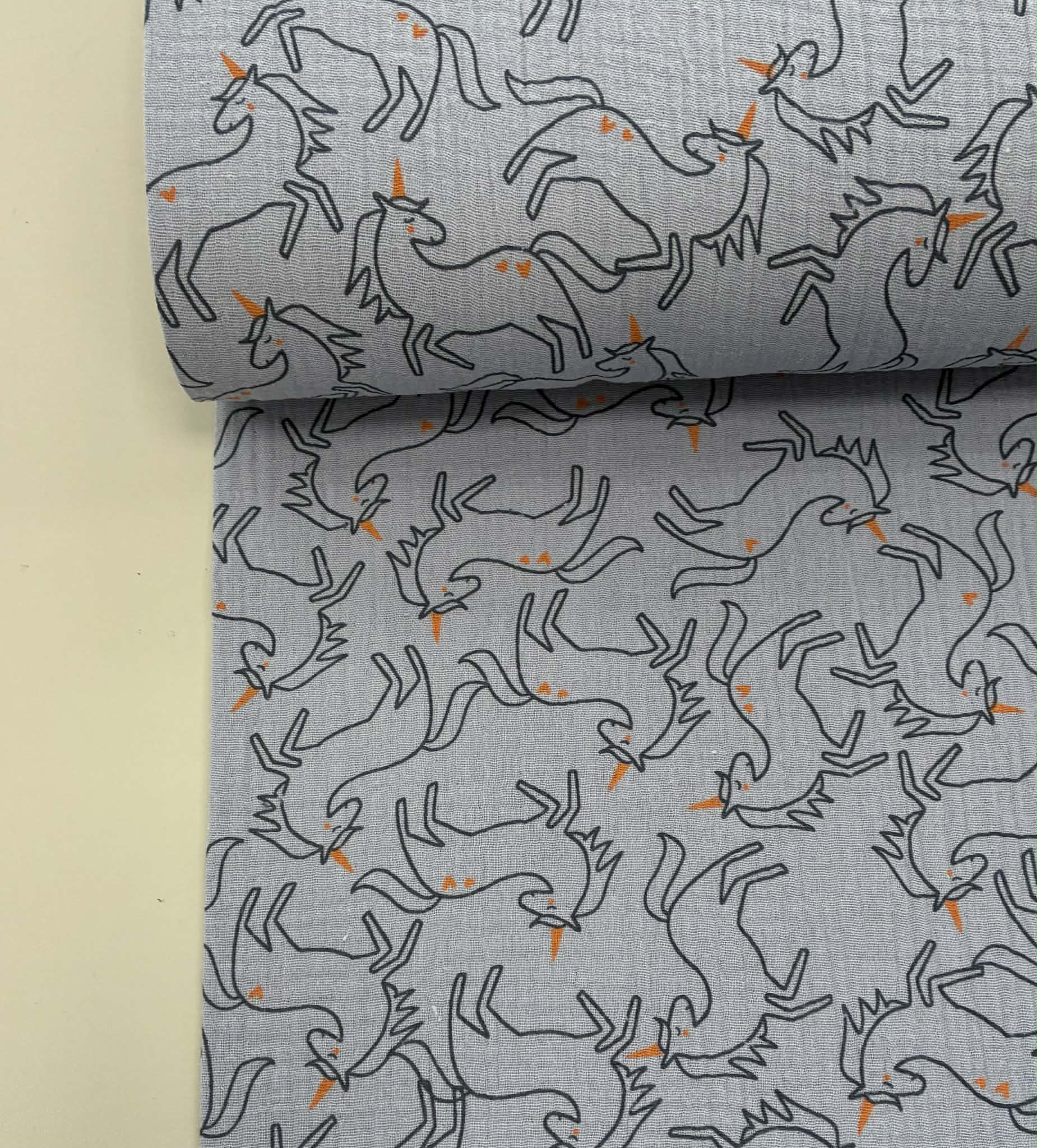Medvilninis double gauze muslinas Pilki vienaragiai