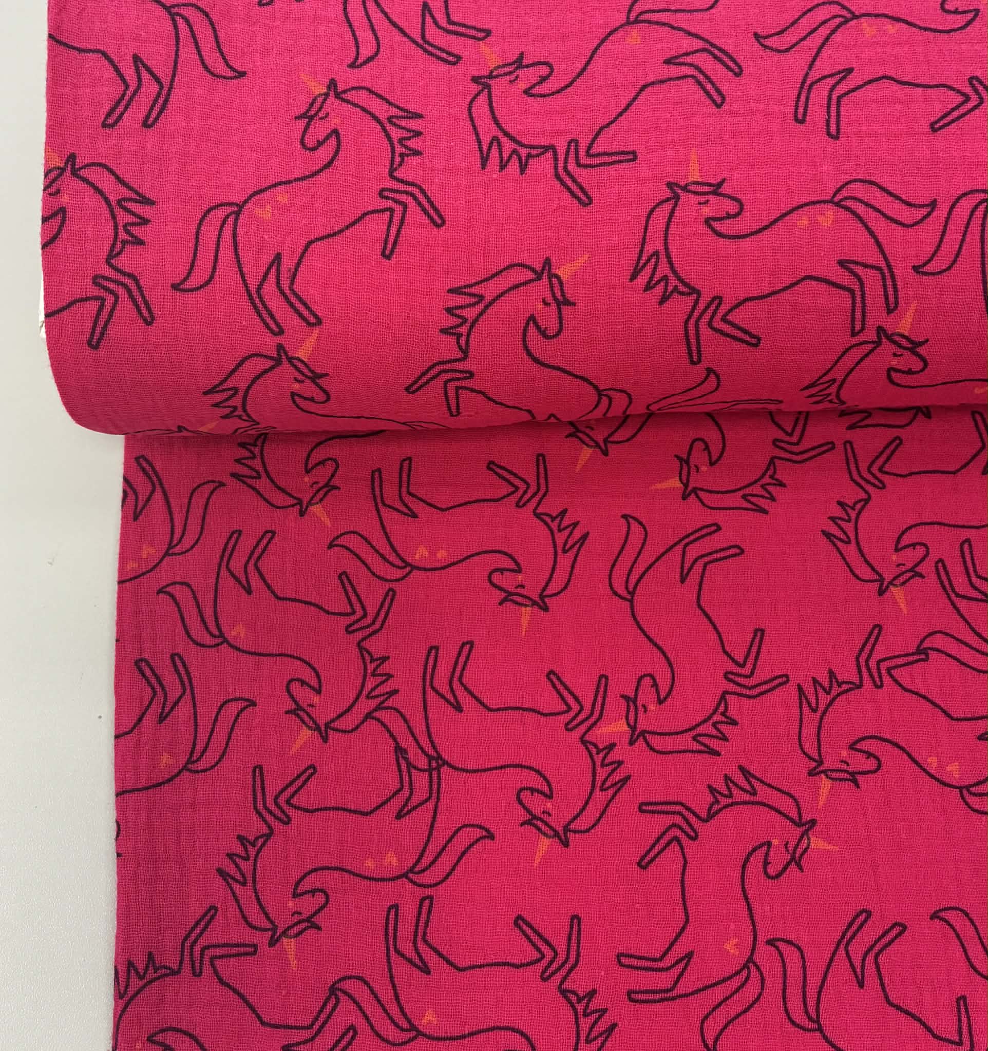 Medvilninis double gauze muslinas Rožiniai vienaragiai