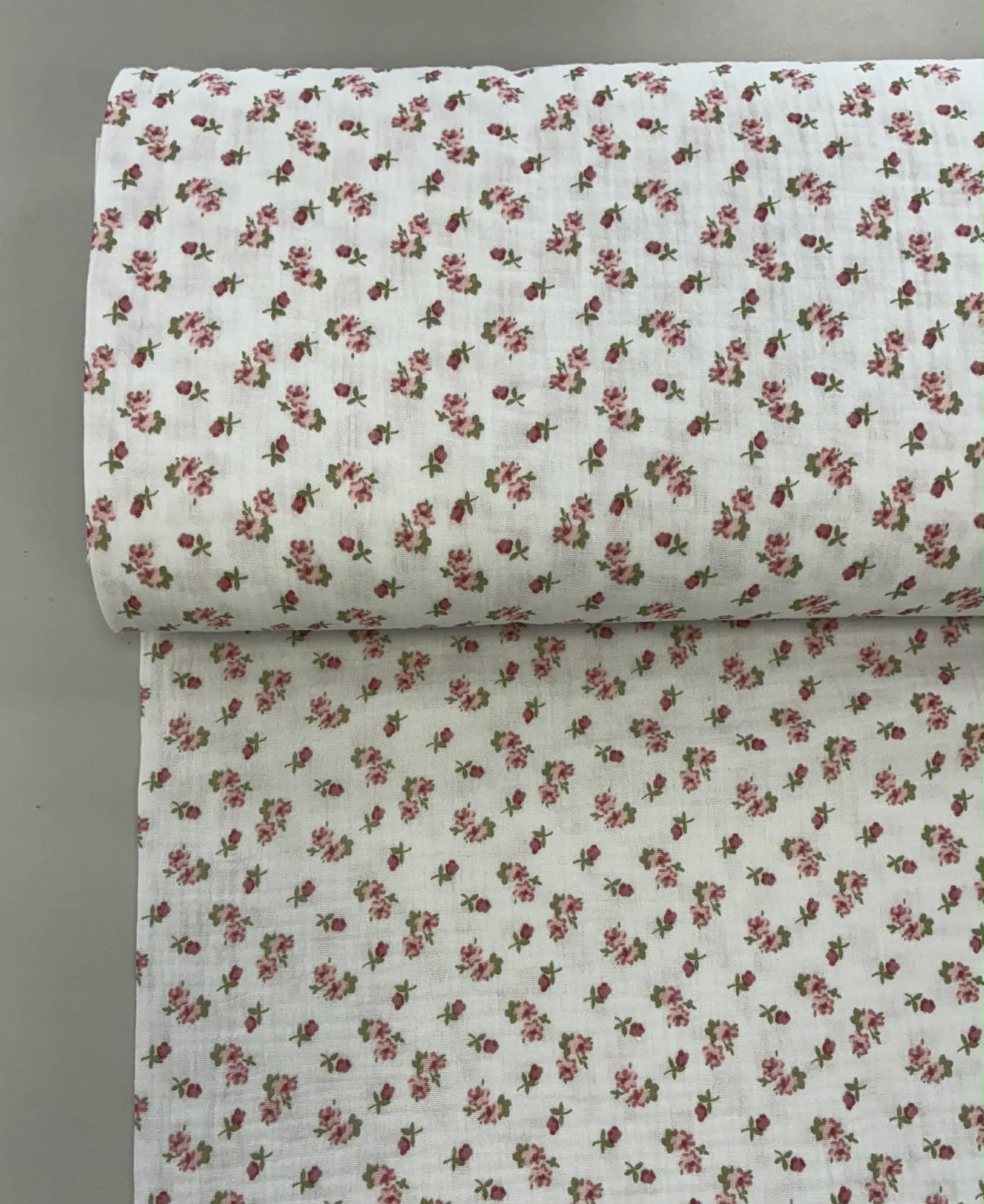 Medvilninis double gauze muslinas Smulkios gėlytės baltas – muslinas tai reto audimo medžiaga, kurios abi pusės gali būti naudojamos kaip gerosios. Medvilnė puikiai sugeria drėgmę, nesielektrina, todėl yra tinkama drabužiams, skiautiniams, namų tekstilei, patalynei, užuolaidoms, rankdarbiams ir kt. Audinys neturi elastano, nesitampo. Tai reikėtų įvertinti prieš apskaičiuojant, kiek audinio Jums reikės. Šis audinys yra tvirtas, kokybiškas, todėl tinka įvairių rūbų siuvimui ne tik suaugusiems, bet ir vaikams. Iš šios medžiagos pasiūti drabužiai malonūs dėvėti, patvarūs, paprastai skalbiami ir puikiai sugeriantys bei išgarinantys drėgmę, leidžiantys kūnui kvėpuoti. Pagrindinis medvilnės privalumas – higieniškumas, todėl puikiai tinka drabužiams, kurie tiesiogiai liečiasi su žmogaus kūnu. Medžiaga labai praktiška, nereikalauja ypatingos priežiūros. Net ir dažnai skalbiant, bet tinkamai naudojant ir prižiūrint ši medžiaga ilgai išlaikys pradinę spalvą, formą ir išliks kokybiška.